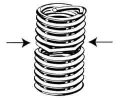 锁紧型钢丝螺套除具备普通型钢丝螺套的相应功能外,还起到了把螺钉锁紧在螺纹孔中,在受到振动和冲击时,可使螺钉不致松扣脱落,比通常锁紧装置工艺性能好,锁紧型钢丝螺套具有多次拆装而不降低螺纹的扭矩,而且还具有较高的再使用性。其原理是在螺纹的中部,由一圈或多圈的多边形非变形圈形成锁紧边,对装配螺钉起到紧固防松的作用