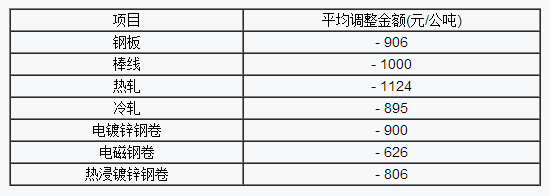 中钢公司4~5月各项钢品内销价格调整金额如下表: