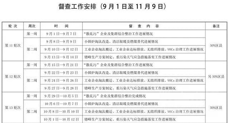 按照小锅炉清单进行核对,以县为单位,每轮次抽查50%的县区,根据工作量确定抽查比例。